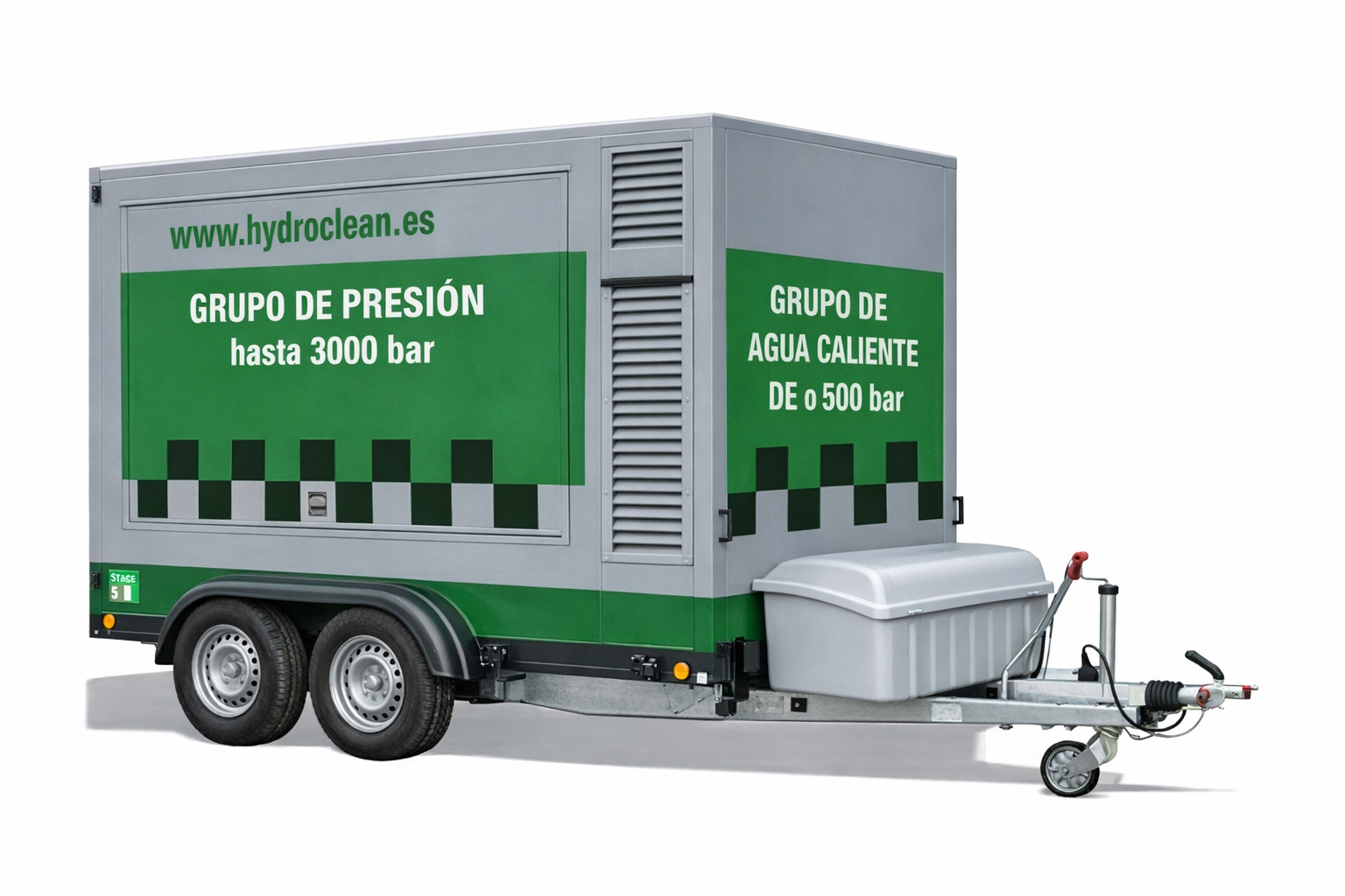 Equipos en remolque con bombas a presión de 0 a 3000 bares para trabajos de limpieza industrial y corte con agua a presión